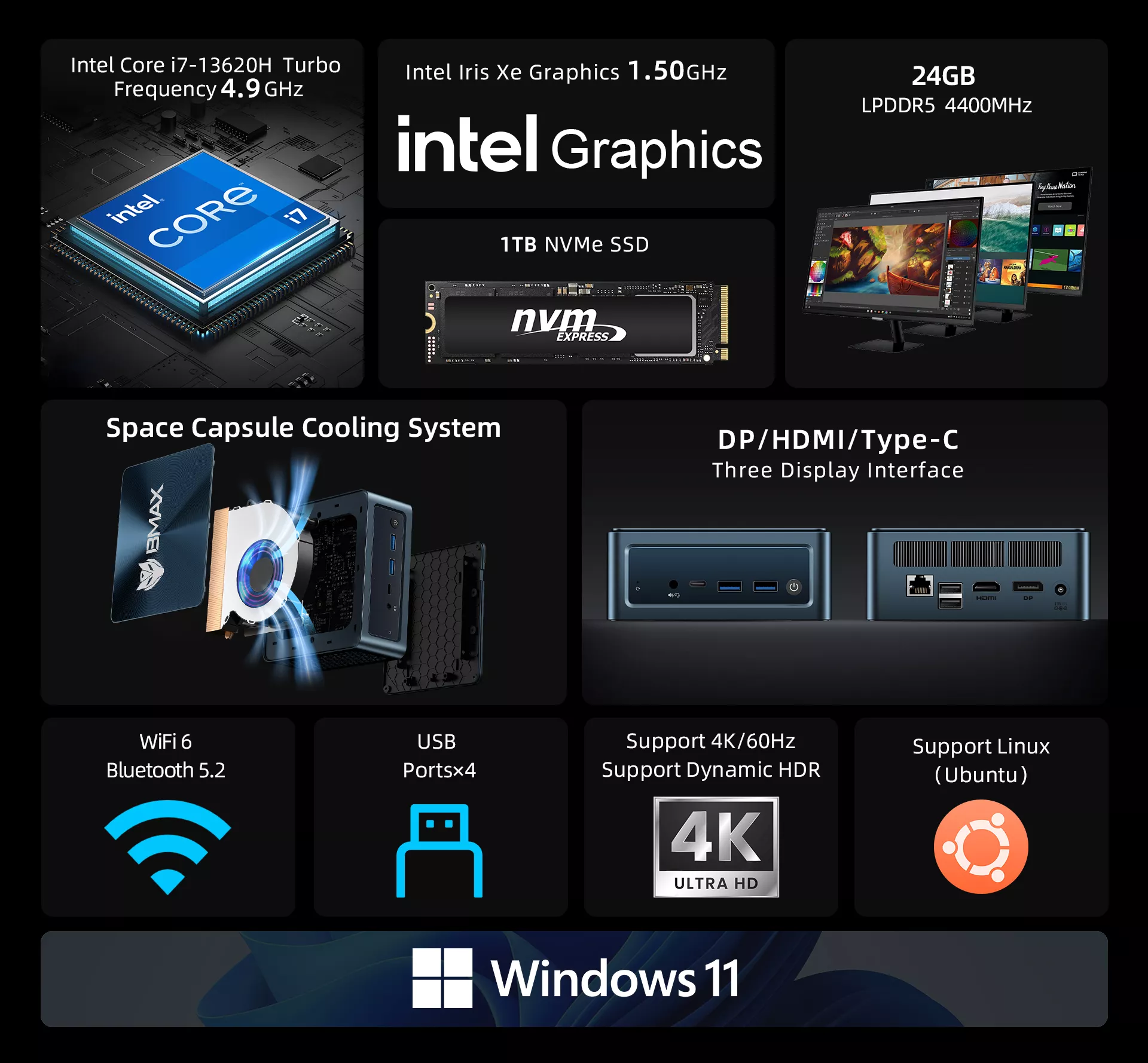 مینی کامپیوتر Bmax مدل B10 با پردازنده اینتل Core i7-13620H