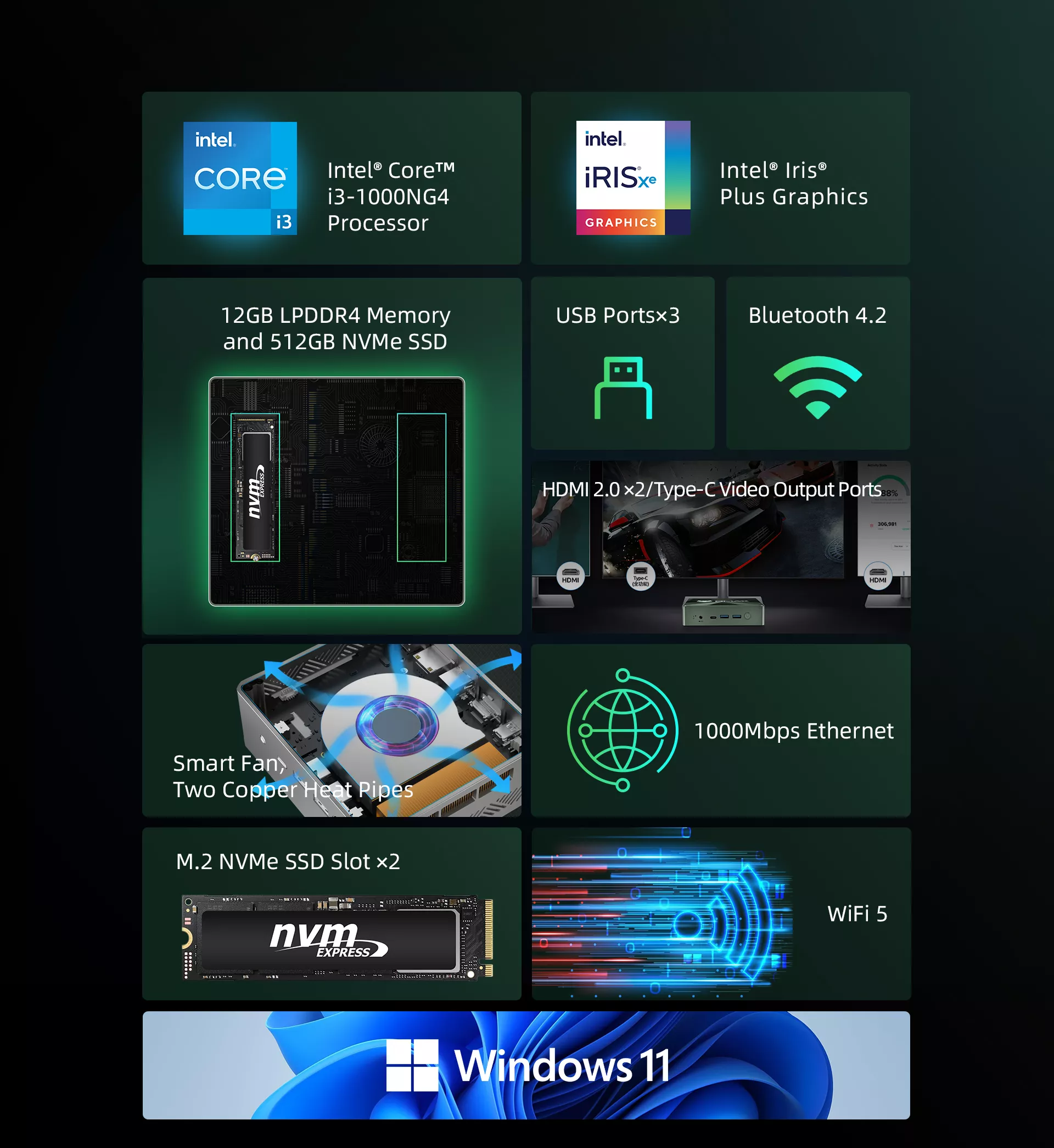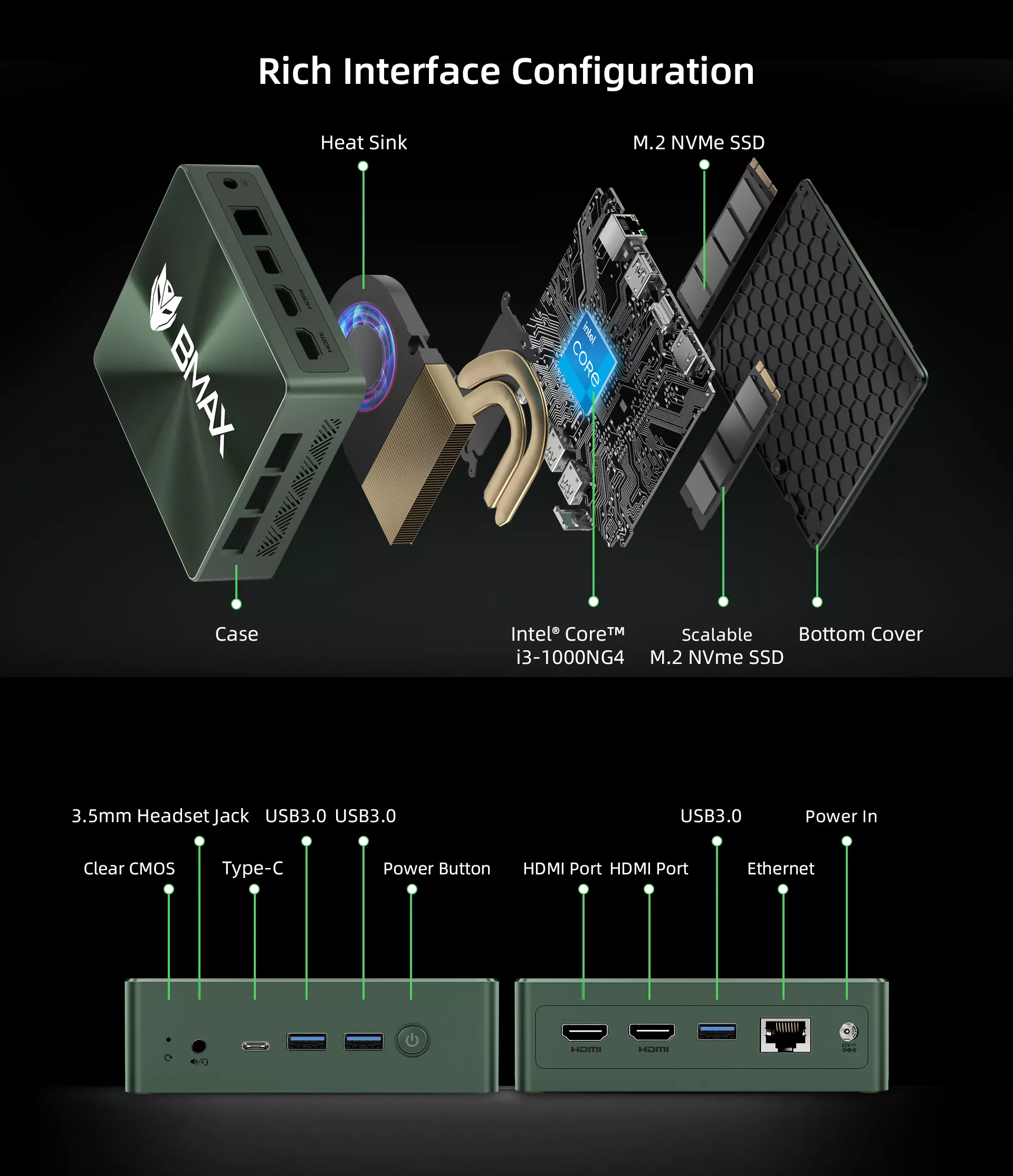 مینی کامپیوتر Bmax مدل B6 plus با پردازنده اینتل Core i3 1000NG4