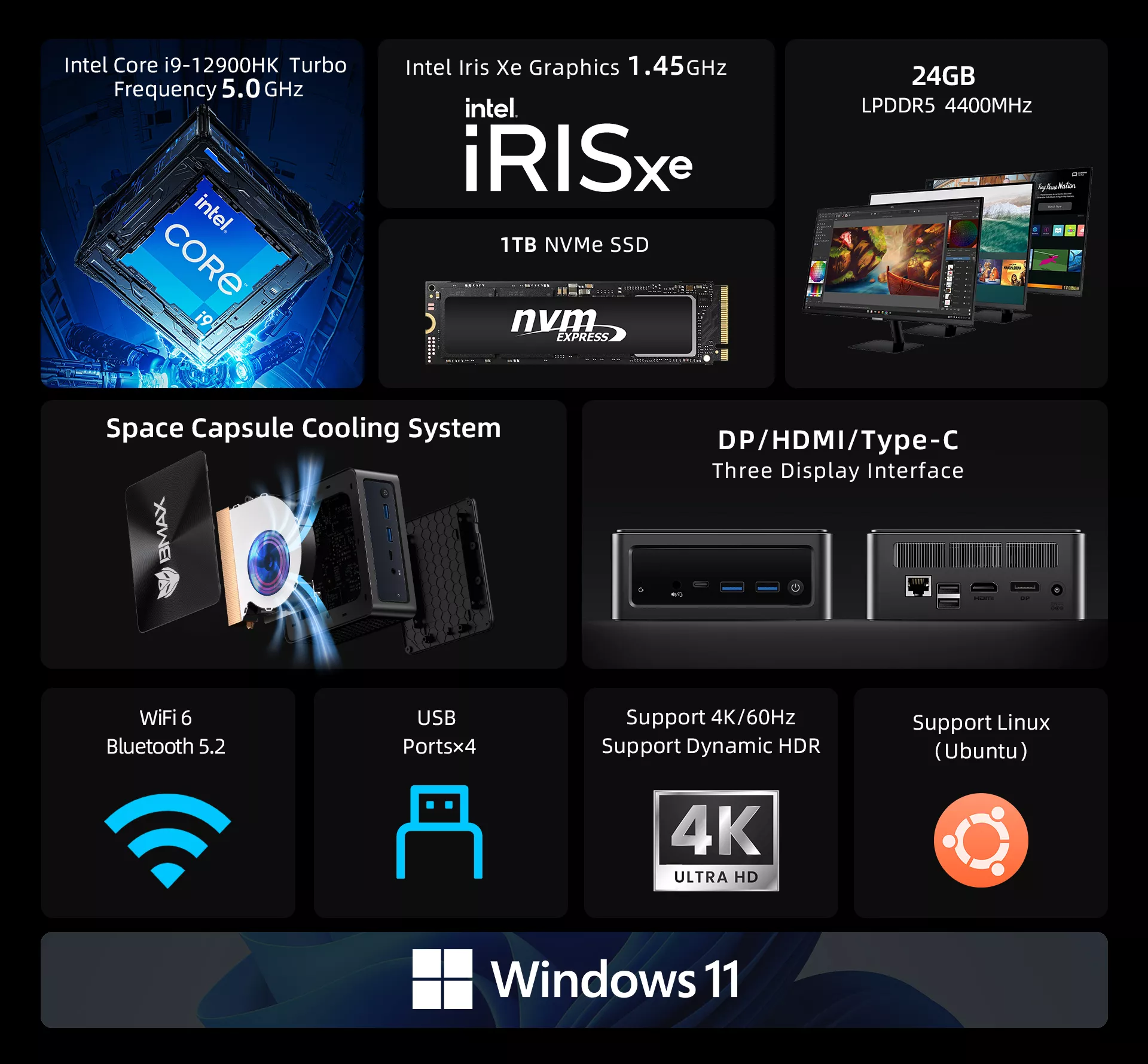 مینی کامپیوتر Bmax مدل B9 power با پردازنده اینتل Core i9 12900Hk
